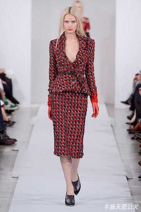 在品牌本季的發(fā)布會上,我們明顯可以看出有一些時裝是出自英國設(shè)計師John Galliano之手,特別是發(fā)布會一開始呈現(xiàn)的幾個領(lǐng)口褶皺和腰部褶皺的西裝造型,有著Dior經(jīng)典套裝的影子。還有從模特們夸張的煙熏妝容和發(fā)型中也 可以看出John Galliano在Dior期間的戲劇性風(fēng)格。盡管如此,不知道是不是受到法國文化的啟發(fā),de la Renta那些以彩色褶皺收腰禮服和鐘形帽的開場,還有油彩濃妝的眼影和些許情色意味的薄紗手套,確實頗具Galliano時期Dior的神韻。發(fā)布會中 出現(xiàn)的其他款式有著Oscar de la Renta一貫的設(shè)計風(fēng)格,已是八十歲高齡的設(shè)計師Oscar de la Renta在2013年將迎來他的從業(yè)50周年,可以說沒有他不曾涉及的設(shè)計領(lǐng)域。在品牌的2013秋冬發(fā)布會上,夸張搶眼的棉麻布印花和提花時裝是本季 的重點設(shè)計。本案例由豐揚(yáng)天思分享